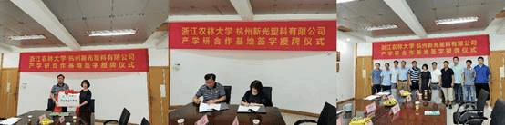 为积极响应国家关于加强高校与企业产学研融合发展的号召,充分发挥高校与企业优势,为学生实习、就业服务及产学研一体化推进拓展更多空间,7月12日,BEAT365英国官网与杭州新光塑料有限公司举办的“产学研合作协议签约仪式暨基地授牌仪式”在杭州新光塑料有限公司举行。参加本次授牌仪式的有BEAT365英国官网化学与材料工程学院党委书记谢志新,学院相关负责人,傅深渊教授、戴进峰博士和肖友华博士及杭州新光塑料有限公司董事长徐雪明、总经理严文胜、副总经理兼技术主管卢伟东及相关部门负责人等。