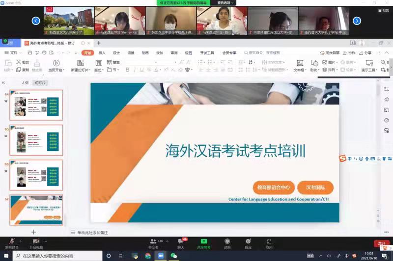 本次培训面向全球汉语考试海外考点,所有考点相关负责人几乎全部参加了此次培训,共计五百余人。汉考国际工作人员不仅就汉语水平考试相关的内容做了系统的梳理和说明,为适应疫情形势而研发的居家网络考试等,也介绍了汉考国际除汉语水平考试外所设立的各类项目,旨在为海外汉语学习者提供尽可能多的来华留学和实习就业的机会,打造HSK留学就业展等国际中文教育品牌,为各考点拓展工作思路提供线索。