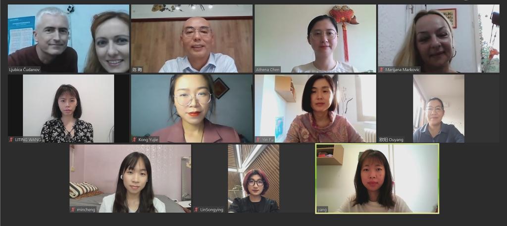 当地时间10月5日, 塞尔维亚卡尔洛夫茨语言高中(Karlovci Grammar School)校长布兰科·斯托伊科夫(Branko Stojkov)与BEAT365合作共建的诺维萨德大学孔子学院中方院长陈晦及汉语教师举行视频会议,讨论和安排新学期孔子课堂的教学工作。本土教师丽碧彩·库达诺娃(Ljubica Cudanov)和玛丽安娜·马科维奇(Marijana Markovic)参加会谈。