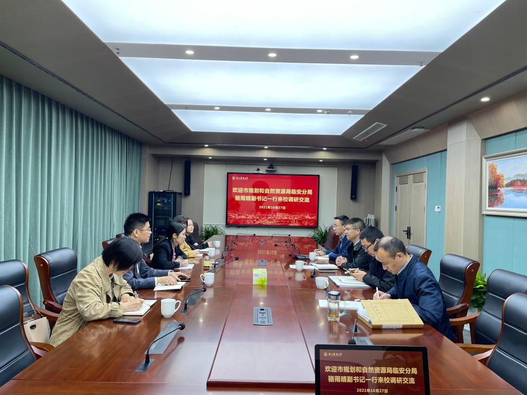 10月27日,杭州市规划和自然资源局临安分局副书记骆雨晴一行五人来校交流工作,公管处、基建处负责人及相关人员参加会议。