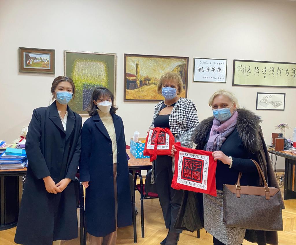沙巴茨高中校长玛丽安娜·伊萨柯维奇(Mariana Isakovic)给予了孔院教师热情接待。玛丽安娜表示,除了务实推进汉语课程教学、注重HSK考级之外,诺大孔院以茶为媒开展的中国“茶文化”特色宣介活动受到师生欢迎,增进了师生及当地民众对中国的认识。同时对疫情给教学活动带来的不利影响表示理解,希望孔院继续给予大力支持,为沙巴茨高中学生提供更多学习汉语和文化交流的机会,并请转达对中方院长陈晦的致意。双方一起回顾了几年来的合作经历和工作成效,一致希望巩固办学合作,提升教学内涵。