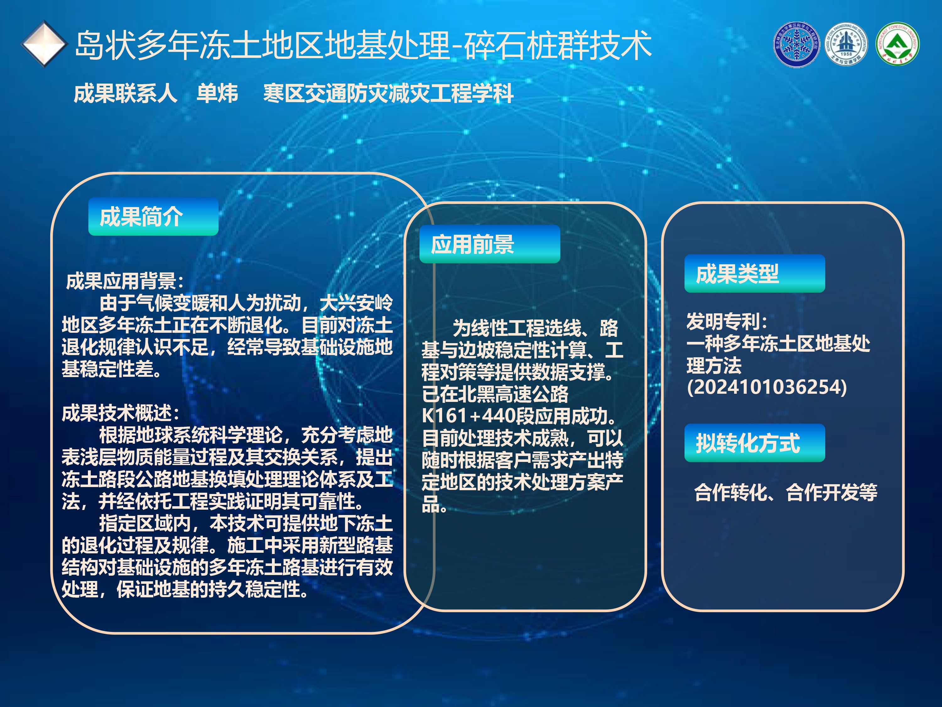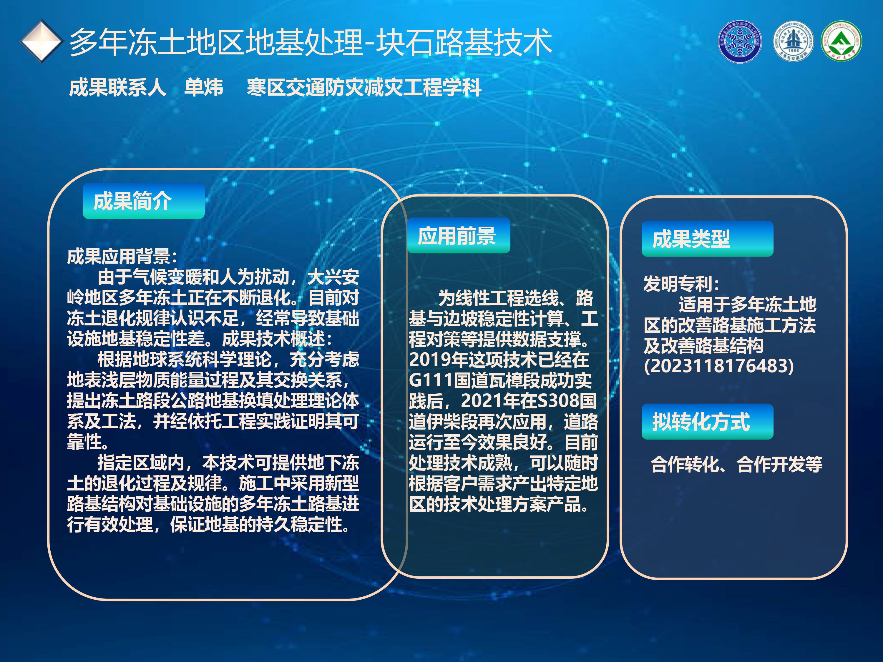 寒区交通防灾减灾工程学科拟转化技术成果